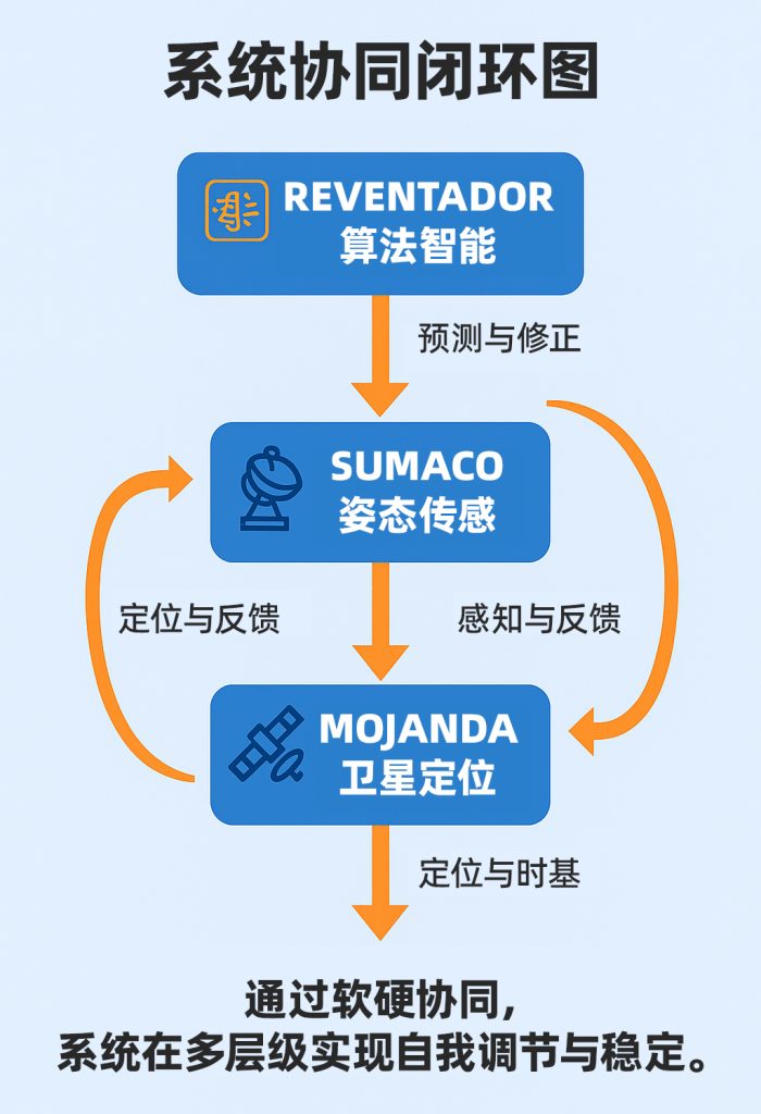 MOJANDA 提供定位基础,SUMACO 维持姿态连续,REVENTADOR 进行多源融合,